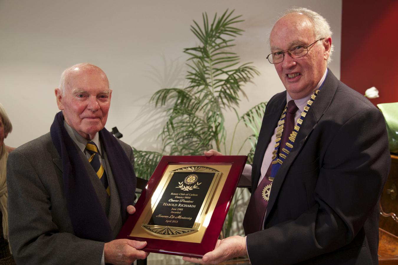 Presentation of Honorary Life Membership to Charter President Harold Richards