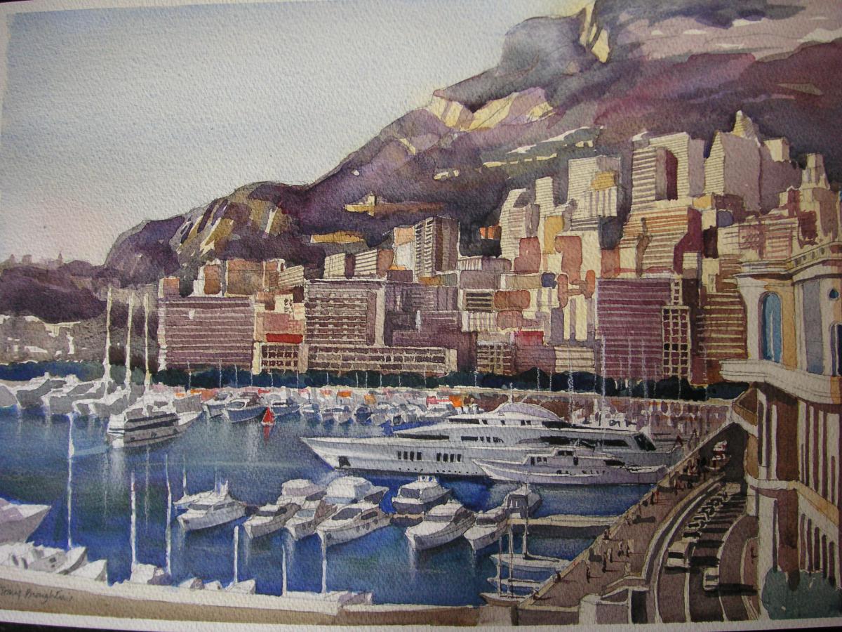 Monte Carlo Harbour, Watercolour $450.00