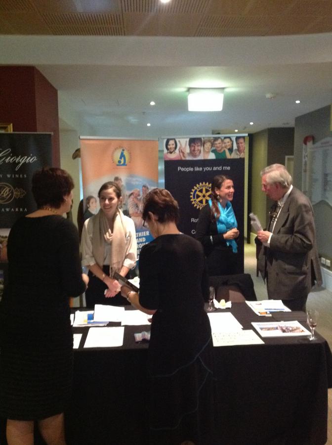 Tania Miletic is the Rotary Peace Scholar Alumnus (Blue Scarf ) and Michelle Heard (Fawn Scarf ) is the current Global Grants Scholar doing a Master at Melbourne University; she is from Houston Texas, with President Ian Ada, Anne Ada and Keith Ryall